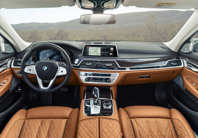 El nuevo BMW Serie 7 viene con el BMW Live Cockpit Professional de serie. Esto comprende un sistema de navegación y multimedia, junto con un totalmente digital, cuadro de instrumentos de alta resolución detrás del volante con una diagonal de pantalla de 12.3 pulgadas y una pantalla de control de 10.25 pulgadas de ancho. El nuevo Sistema Operativo BMW 7.0 destaca por su funcionalidad digital de vanguardia adaptada de forma precisa a las necesidades del conductor. Funcionalidad de pantalla táctil para la pantalla de control, el controlador iDrive, Los botones del volante y el control por voz permiten al conductor elegir varias formas de funcionamiento intuitivo.