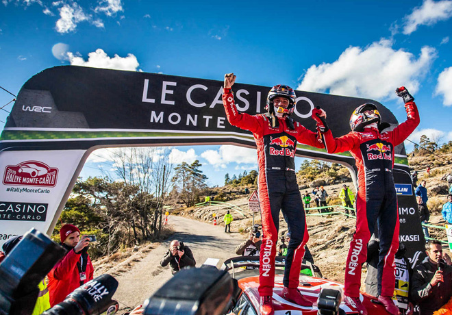 Se defendió de Thierry Neuville por 2,2 segundos en la final más reñida de la historia de Montecarlo y consiguió una emotiva victoria en su regreso a Citroën. Fue el centésimo éxito en el mundial de rallyes para el fabricante francés.