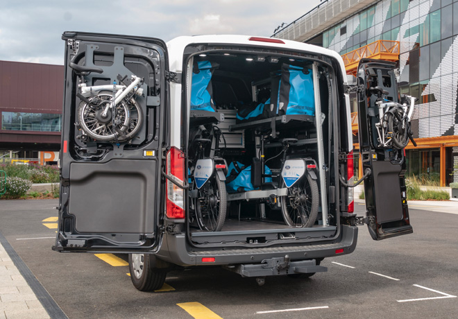 Uno de los conceptos vitales para el funcionamiento de este proyecto es el de «almacén sobre ruedas». Se trata de un modo de acondicionar las vans comerciales no solo de Ford sino de otros fabricantes para que actúen como centros dinámicos de entrega que recogen pedidos de un depósito y luego se detienen brevemente en ubicaciones estratégicas para repartir los pedidos. La plataforma de software de Ford se coordina con mensajeros cercanos motorizados o en bicicleta y también lo hará en un futuro con drones y robots autónomos para cumplir la última etapa de cada entrega.