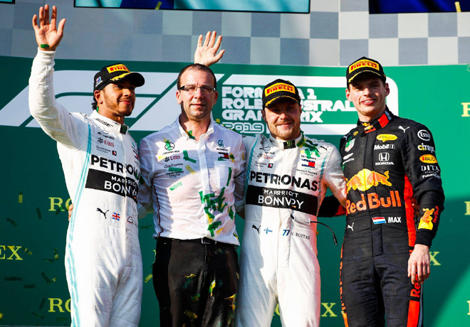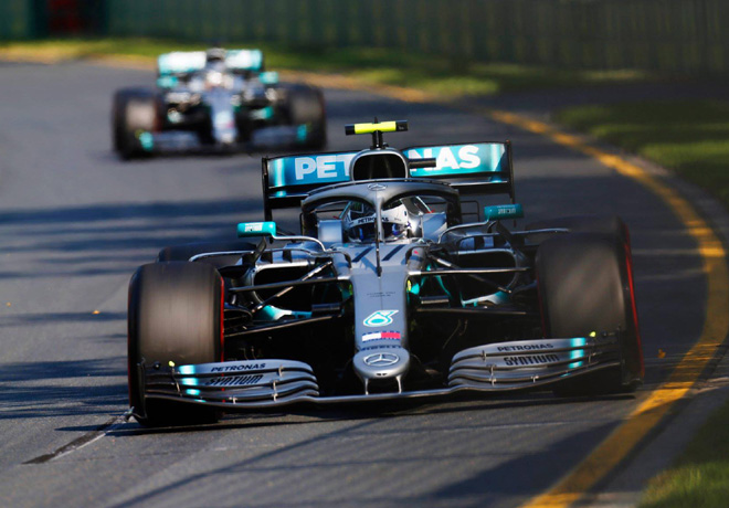 Valtteri Bottas con el Mercedes fue el contundente ganador de la primera competencia de la Fórmula 1 llevada a cabo en el circuito de Melbourne, en Australia. El finlandés superó en la largada y al llegar a la primera curva del circuito a su compañero Lewis Hamilton (Mercedes), y a partir de ese momento comenzó a distanciarse progresivamente de sus rivales para obtener una cómoda victoria con récord de vuelta incluido, que este año premia con un punto a quien lo logra.