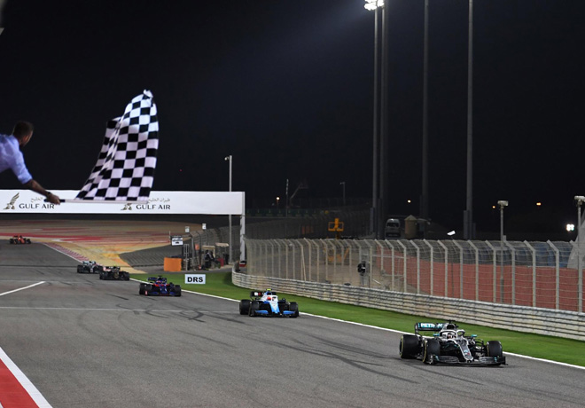 Lewis Hamilton con el Mercedes consiguió en Bahrein la primera victoria del año y la número 74 de su palmarés. El británico supo aprovechar el problema de potencia que surgió en la Ferrari del cómodo lÃder, Charles Leclerc, para alcanzar el triunfo. Segundo arribó su compañero Valtteri Bottas, quien también dio cuenta del Monegasco, que finalmente quedó tercero.