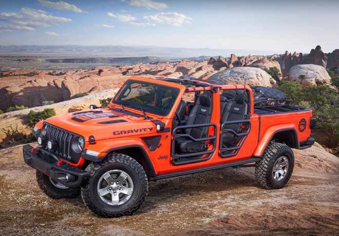 El concepto Jeep Gladiator Gravity está basado en la idea de mostrar un vehículo todo-terreno especializado en trepar sobre rocas con la ayuda de Jeep Peformance Parts ya disponibles.