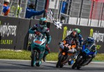 Las siguientes vueltas estarían marcadas por la reacción de Rins, que comenzaría a recortar posiciones para adelantar en un primer momento a su compañero, Joan Mir, antes de echar el resto en la última vuelta para hacerse con la cuarta plaza que ostentaba Miller.