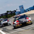 Michelisz completaba la vuelta con medio segundo más de ventaja; 2,5 en total, y 5,5 sobre Huff. Pero Girolami pronto se puso a la cola de Huff acosándolo. En la larga recta Huff se defendió hasta el lÃmite. Pero el argentino conseguÃa recuperar la tercera posición que tenÃa en la parrilla.