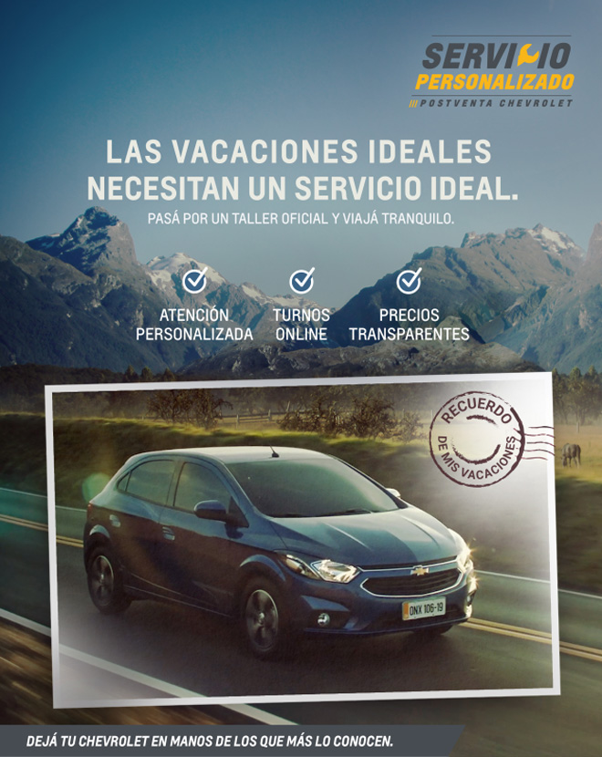 “De esta forma, las vacaciones ideales tienen un servicio ideal con atención personalizada, turnos on line y precios transparentes, para un manejo seguro y responsable”, comentó Pedro Arleo, Gerente de Postventa de Chevrolet.