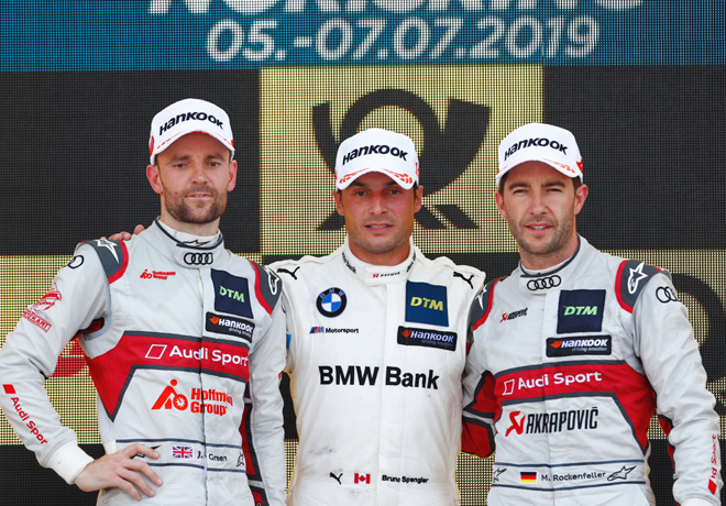 Detrás del canadiense se clasificaron tres coches de esta marca. Jamie Green y Mike Rockenfeller completaron el podio, y Robert Frijns fue cuarto. Todos ellos se vieron favorecidos por los problemas que dejaron fuera de carrera a Marco Wittmann y Joel Eriksson. El quinto puesto fue para Philipp Eng, segundo BMW entre los 5 primeros.