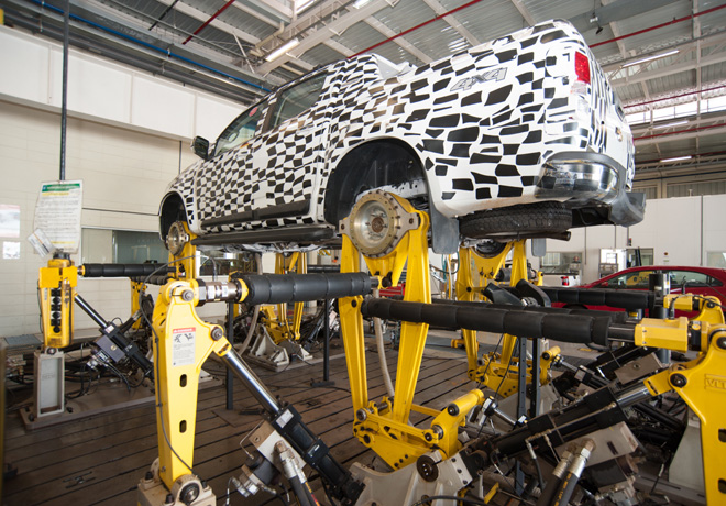 - Laboratorio de Pruebas Estructurales: (inicio de actividades en 2000). Prueba la durabilidad de la carrocería, además de los componentes del vehículo que son sometidos a las repeticiones, como el sistema de las trabas de las puertas y los elevadores de vidrios. Esta tarea está a cargo de robots que realizan la misma operación más de 100 mil veces ininterrumpidamente. Para verificar si el auto funciona en las más adversas condiciones climáticas, hay una cámara cuyo rango de temperatura es de -40ºC a +85ºC. El laboratorio también examina ítems de seguridad pasiva por medio de pruebas estáticas que analizan la fijación de los asientos y de los cinturones de seguridad. También se destaca el simulador multiaxial: cuatro pilares hidráulicos unidos al sistema de suspensión reproducen los movimientos de torsión que el vehículo sufriría si hubiera transitando por pisos irregulares