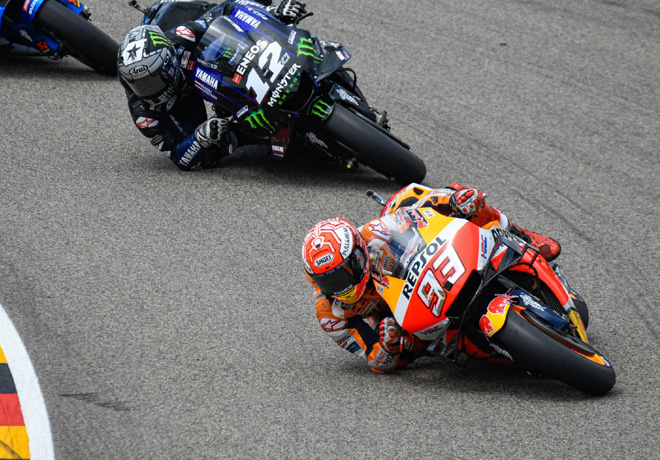 Las principales amenazas de Marc eran Maverick Viñales (Monster Energy Yamaha) y un Álex Rins (Team Suzuki) ávido de puntos y de quitarse la espina de la caída en Assen cuando lideraba la carrera. Un objetivo que también acabaría por los suelos más tarde.