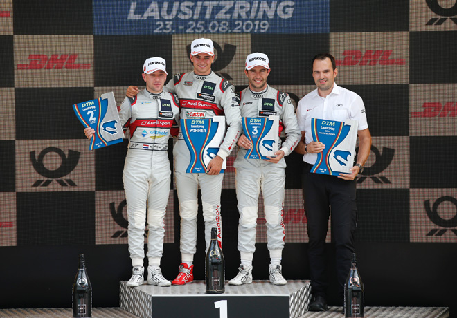 Los problemas en el Audi de Rene Rast casi llegando a la mitad de la carrera y su posterior abandono le permitieron a Nico Muller (Audi) lograr la victoria en el circuito de Lausitzring. Segundo finalizó Robin Frijns (Audi) y tercero Mike Rockenfeller (Audi). La estrategia del equipo con sede en Ingolstadt, Alemania, relegó a Marco Wittmann (BMW) a la cuarta posición, por detrás de los tres Audi, que coparon el podio.