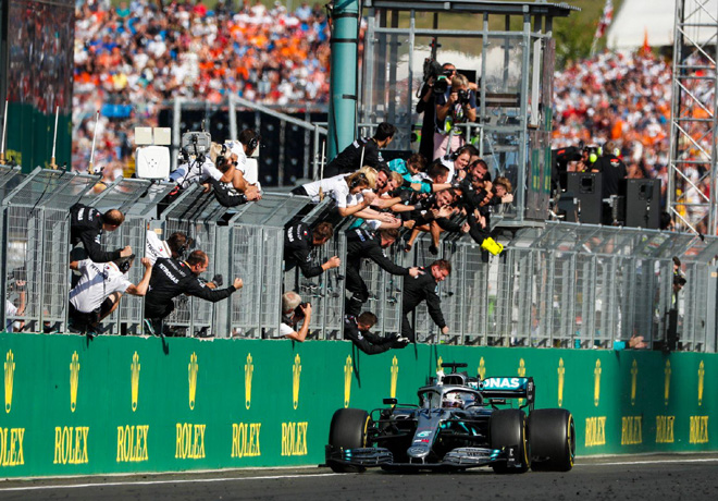 Una excelente estrategia de parada en boxes por parte del equipo Mercedes le permitió a Lewis Hamilton conseguir una importante victoria que lo acerca cada vez más a su sexto tÃtulo mundial, que serÃa el tercero consecutivo. Este fue su séptimo triunfo en HungrÃa.