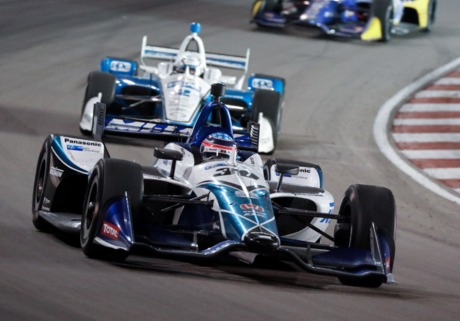 Carpenter superó a Tony Kanaan e intentó acercarse a Sato para birlarle la victoria; pero no pudo con su cometido por solamente 0.0399 segundos y debió conformarse con el puesto de escolta. Después de que Sato contuvo a Carpenter en la la llegada, todos las miradas se volvieron hacia el ganador del Premio NTT P1 y líder del campeonato Josef Newgarden, quien había estado intercambiando el cuarto lugar con el novato Santino Ferrucci. Éste se había desviado unas vueltas antes, permitiendo que Newgarden lo pasara. Pero Ferrucci superó a Newgarden, aparentemente en forma apretada, y Newgarden terminó haciendo un trompo.
