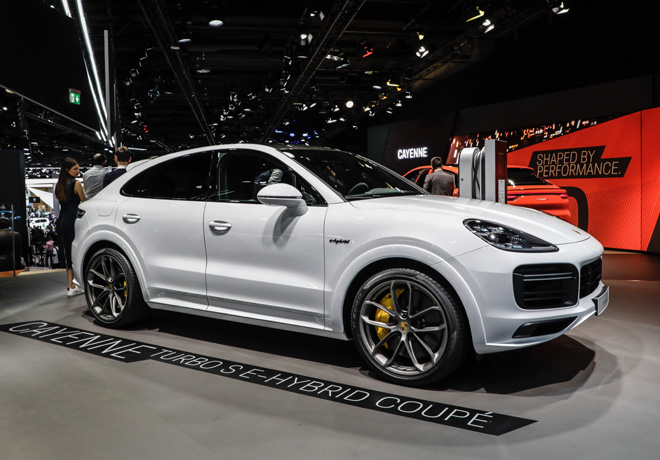 El Cayenne Turbo S E-Hybrid también es nuevo. El miembro más potente de la familia Cayenne, con 500 kW (680 hp), está disponible en versiones Cayenne y Cayenne Coupé. Está alimentado por un motor V8 de 4,0 litros, en combinación con un motor eléctrico. La autonomía puramente eléctrica del Turbo S E-Hybrid es de hasta 40 kilómetros.