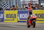Pese a intentarlo de todas las maneras posibles, Maverick se vio penalizado por la mayor velocidad punta de la Desmosedici GP y se vio apeado del podio ante su público. Con el podio virtualmente decidido, Márquez cruzaba la línea de meta con autoridad para encadenar su cuarta victoria seguida en MotorLand y sumar su octavo triunfo del año en su Gran Premio 200 en el Campeonato del Mundo. El ’93’, además, acumula ya 78 victorias en todas las categorías, 52 de ellas en MotoGP.