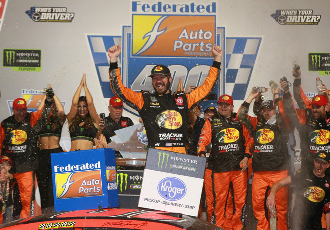 En una noche de muchas primicias para el equipo Joe Gibbs Racing, Martin Truex Jr. dio una nueva clase de dominio en la segunda ronda de los Playoffs de la NASCAR Cup Series 2019. Tras sobrevivir un incidente en que perdió el control de su Toyota luego de un toque con el Ford de Ricky Stenhouse Jr. cuando iba en primer lugar, Truex Jr. adelantó a su compañero de equipo Kyle Buch a 25 vueltas del final para encaminarse a la victoria.