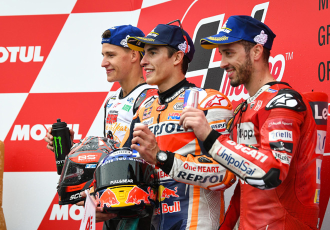 En el penúltimo paso por línea de meta la distancia entre ambos se acortaría hasta las 8 décimas, y tras los primeros sectores se reduciría hasta medio segundo. Por desgracia para ‘Dovi’, le faltarían aún unos metros más y Quartararo lograría conseguir el segundo puesto por detrás del implacable vencedor, Marc Márquez, que sumaba su décima victoria del año para darle el título de Constructores a Honda, mientras ‘El Diablo’ se alzaba finalmente con el título de Rookie del Año.