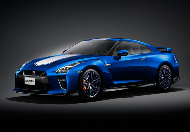 Nissan GT-R 50° Aniversario: Este modelo edición especial celebra el carácter de clase, pero deportivo, del GT-R, asà como su extraordinaria historia y capacidades, con elementos interiores y exteriores y combinaciones bicolor reminiscentes de los colores tradicionales de Nissan.