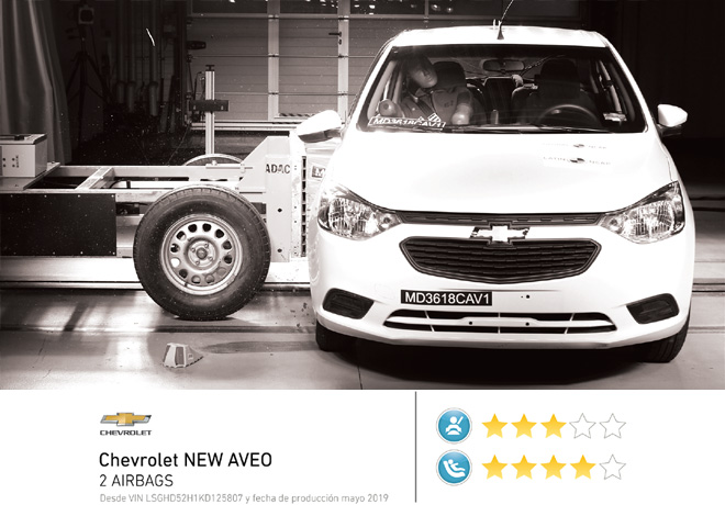 El Chevrolet Nuevo Aveo, fabricado en China y disponible principalmente en México, fue actualizado y alcanzó las tres estrellas para Protección Ocupante Adulto y cuatro estrellas para Protección Ocupante Infantil. El Nuevo Aveo fue evaluado en 2018, logrando dos estrellas para Protección Ocupante Adulto y cuatro estrellas para Protección Ocupante Infantil. En 2018 el Aviso de Cinturón de Seguridad (SBR) no cumplía con los requerimientos de Latin NCAP, lo que explicaba el resultado para adultos. A partir de la fecha de producción de mayo 2019 y desde el VIN LSGHD52H1KD125807, el nuevo modelo de Aveo año 2020 se actualizó con una mejora en el SBR, lo que le permitió alcanzar tres estrellas para la Protección de Ocupante Adulto.