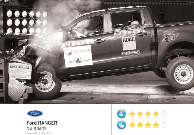 La Ford Ranger fue evaluada en 2016 por Latin NCAP y alcanzó tres estrellas para Protección Ocupante Adulto y cuatro estrellas para Protección Ocupante Infantil. La falta de Control Electrónico de Estabilidad (ESC) en los niveles requeridos por Latin NCAP no le permitió a la Ranger alcanzar calificaciones más altas de estrellas. La Ford Ranger actualiza su producción a partir de diciembre de 2019, cumpliendo ahora con las exigencias de disponibilidad de ESC según Latin NCAP. En el límite de la validez de la calificación de la Ranger, Ford actualizó el equipamiento del ESC y luego de la evaluación de Latin NCAP, el ESC cumple con los requerimientos detallados en el protocolo, por lo que la calificación de la Ranger ahora es de cuatro estrellas para Protección de Ocupante Adulto. (resultado actualizado).