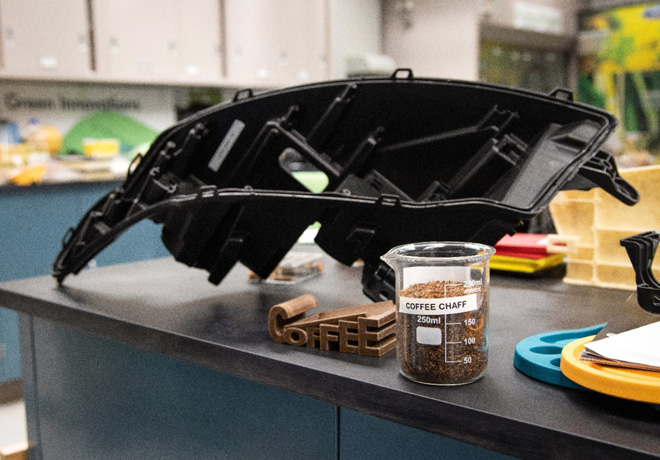 Cada año, se descartan millones de toneladas de cáscara de granos de café durante el proceso de tostado. En conjunto, Ford y McDonald’s pueden desarrollar una innovadora forma de utilizar gran parte de ese recurso. Las compañías descubrieron que la cáscara puede convertirse en un material resistente que sirve para reforzar ciertas partes de los vehículos. Calentando la cáscara del grano de café a altas temperaturas, con bajos niveles de oxígeno, mezclándola con plástico y otros aditivos, da como resultado un material fácil de manipular.
