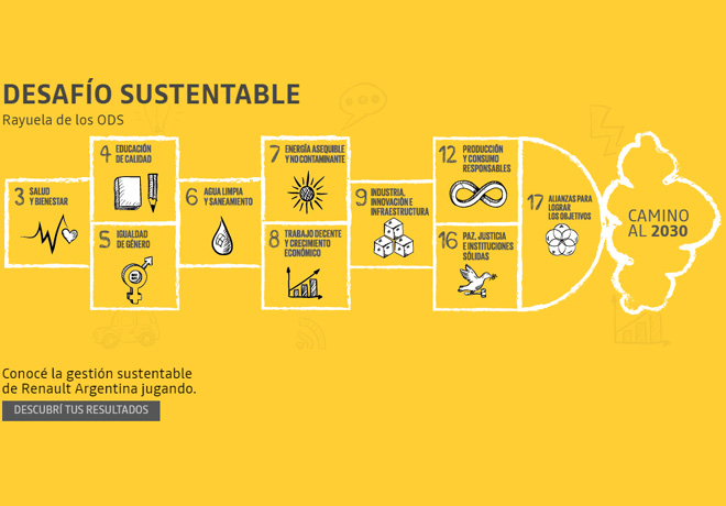 Ingresando a www.sustentabilidad.renault.com.ar se puede acceder al juego interactivo “Rayuela Sustentable”, y conocer todas las iniciativas que lleva adelante la compañía en una selección de diez ODS identificados como prioritarios para el negocio. A través de este reporte, la compañía busca transmitir su convicción y compromiso con las buenas prácticas de gobierno corporativo, la innovación y la reducción la huella medioambiental de sus vehículos.