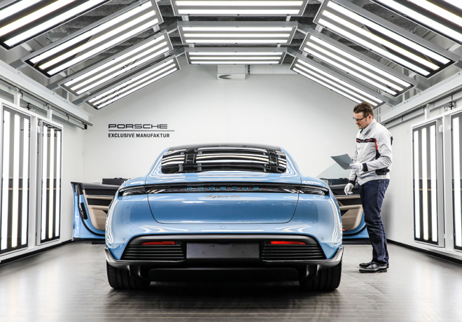 Porsche Exclusive Manufaktur en Zuffenhausen, ha ampliado su capacidad de cara al lanzamiento del nuevo Taycan: el espacio de la fábrica ha aumentado un tercio, hasta 2.000 m2, y se han añadido cuatro nuevas estaciones de trabajo con plataforma elevadora. También se han creado 50 m2 de espacio para almacenamiento y se ha optimizado la logística, mediante una conexión directa con la sección de vehículos terminados. El equipo también se ha incrementado con más expertos en acabado de vehículos.