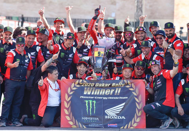 Edición tras edición, sin desalentarse, pese a los reveses acumulados, el equipo HRC ha logrado perfeccionar la fiabilidad de la moto, reorganizar su estructura y encontrar esa alquimia sin la que resulta imposible hacerse con el éxito, para destronar al equipo KTM que sumaba 18 victorias consecutivas desde 2001. Detrás de Brabec, Pablo Quintanilla ha sido el más incisivo. Al manillar de su Husqvarna, el piloto chileno se ofrece un excelente segundo puesto, tras un año dedicado a recuperarse de la lesión del último Dakar en Perú.