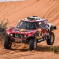 Los tres pilotos que ocupan el podio suman 50 participaciones en coches y ahora 14 títulos en la categoría. El conocimiento de la región y la fiabilidad de un Hilux Toyota con resultados demostrados, hacía que los pronósticos favorecieran a Nasser Al-Attiyah. Sin embargo, el buggy Mini confiado a Sainz no se ha desviado en ningún momento del camino al éxito. En cabeza tras la tercera etapa y luego en la jornada de descanso, El Matador solo tembló en la octava especial, cuando perdió parte de su ventaja sobre sus dos rivales más cercanos. Sin embargo, supo aguantar luego sus intentos de ataque hasta Qiddiya.