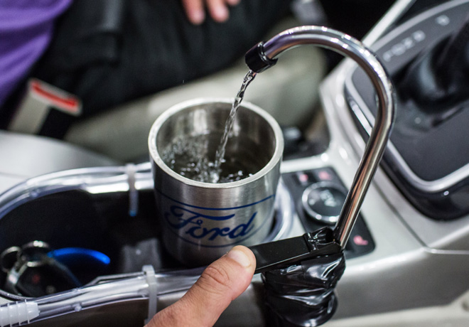 Dos ingenieros de la compañía, por ejemplo, han desarrollado una forma de convertir humedad en el aire en agua potable. El sistema de aire acondicionado de los vehículos genera condensación y el agua, producto de este proceso, se desperdicia. Los ingenieros buscaron la forma de convertir ese desperdicio en un recurso útil y crearon un sistema mediante el cual el agua condensada se filtra para ser distribuida a través de una canilla dentro de la cabina. Así, el conductor y los pasajeros disponen de agua lista para su consumo.