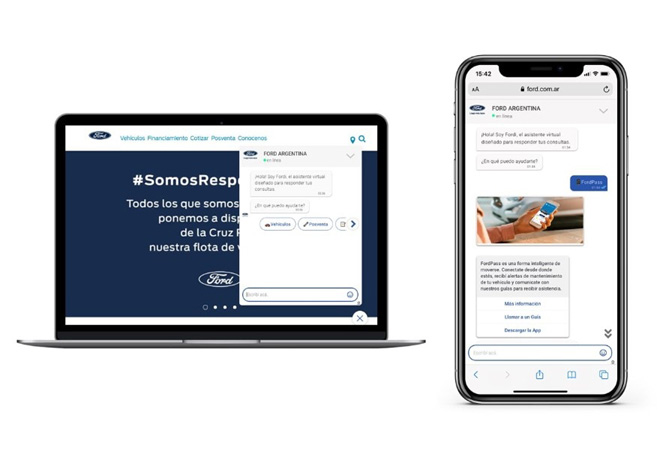 Los clientes de Ford también encontrarán en el sitio todos los canales de atención disponibles para resolver sus inquietudes y recibir información sobre los productos y servicios de la marca. El chat online de Ford funciona las 24h con un formato operado con inteligencia artificial y, en el caso de que el usuario requiera hablar con un asesor, selecciona la opción y desde la misma plataforma un asesor del Centro de Atención al Cliente o Plan Óvalo toma la conversación.
