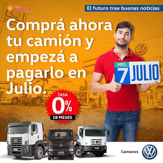 Volkswagen Camiones y Buses y Volkwagen Financial Services anunciaron un nuevo plan de financiación para toda su Gama de Camiones con el concepto de “Compra ahora y pagá la primer cuota en Julio”.
