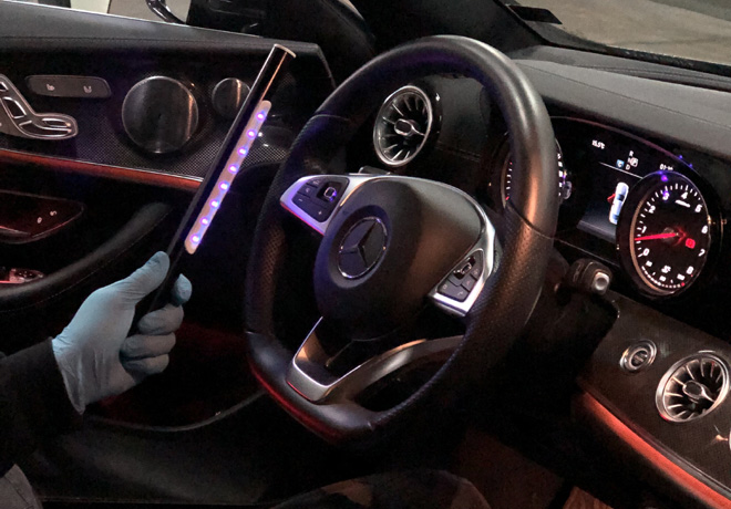 Esta tecnología de luz ultravioleta (UVC) incluye la desinfección de las superficies del interior de los autos de todos sus clientes ya que destruye la estructura molecular en las células de microorganismos patógenos como el Covid-19.