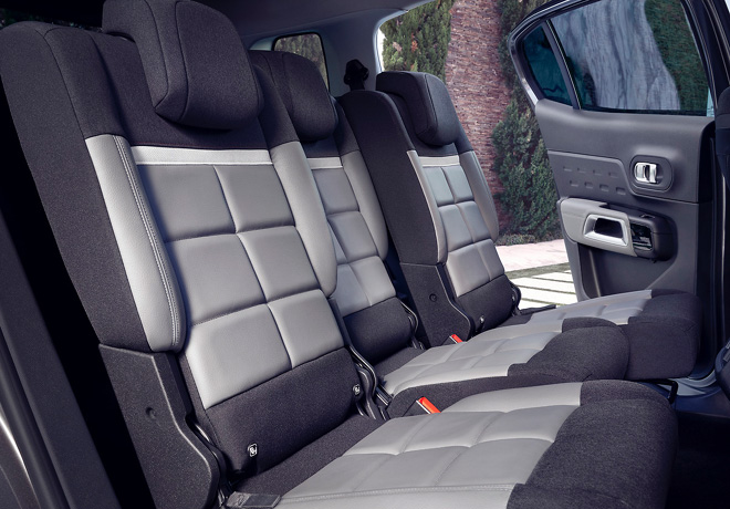 Con sus 3 asientos traseros individuales, reclinables, rebatibles y corredizos, el Nuevo SUV C5 Aircross se convierte en el SUV más modulable de su segmento. Estos asientos, además del confort que proporcionan por su avanzada concepción y sus mullidos específicos, ofrecen múltiples ventajas: Con un ancho idéntico, proporcionan el mismo nivel de confort para los 3 pasajeros de la segunda fila, por lo que quien viaja en el centro está igual de cómodo que el resto. Ajustables en longitud, a lo largo de una distancia de 150 mm, permiten modular el espacio habitable o el del baúl. También son regulables en inclinación en 5 posiciones (de 19 a 26.5°). Rebatibles, permiten conseguir un fondo plano gracias al suelo de doble altura del baúl.