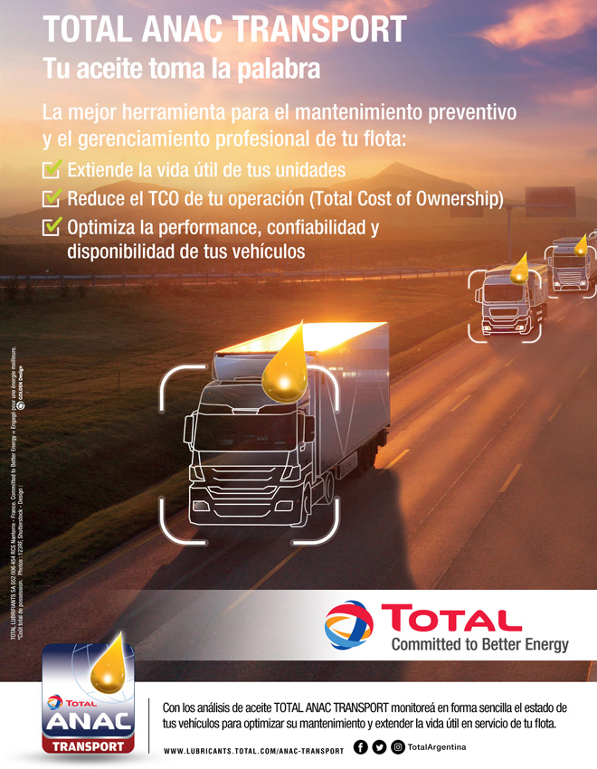 Para más información sobre el servicio ANAC, ingresar en; lubricants.total.com/anac-transport o contactarse con el Equipo de Servicio Técnico de Total Especialidades Argentina, en: marketing@total.com.ar.