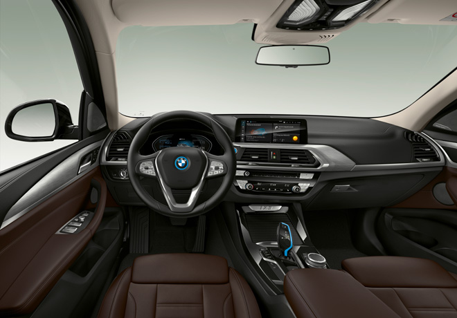 El BMW iX3 está disponible con dos líneas de equipamiento atractivas. La especificación de serie «Inspiring» comprende una amplia gama de detalles diseñados para mejorar la comodidad, la seguridad y el placer de conducir. Estos incluyen pintura metálica, rines aerodinámicos de 19 pulgadas, faros LED, techo solar panorámico de vidrio, operación automática del portón trasero, Driving Assistant Professional con control de velocidad crucero activo con función Stop & Go, asistente de control de dirección y carril, advertencia de cambio de carril y advertencia de salida de carril, más Control de estacionamiento con sensores de distancia delanteros y traseros, un indicador de presión de neumáticos y un sistema de alarma. También hay un volante deportivo, un paquete de compartimientos, iluminación ambiental, asientos ajustables eléctricamente con función de memoria en el lado del conductor y un sistema de control de clima automático de tres zonas operado por bomba de calor que incluye la función de precalentamiento y acondicionamiento previo. BMW Live Cockpit Professional (completo con un sistema de navegación optimizado), el Asistente Personal Inteligente de BMW, la integración de teléfonos inteligentes con Apple CarPlay y la preparación automática de Android, la actualización remota de software, los servicios digitales de BMW Connected Charging, telefonía con carga inalámbrica y un sistema de audio con El sintonizador DAB también se puede encontrar en la lista de equipos de serie (disponibilidad de equipamiento de acuerdo a cada mercado).