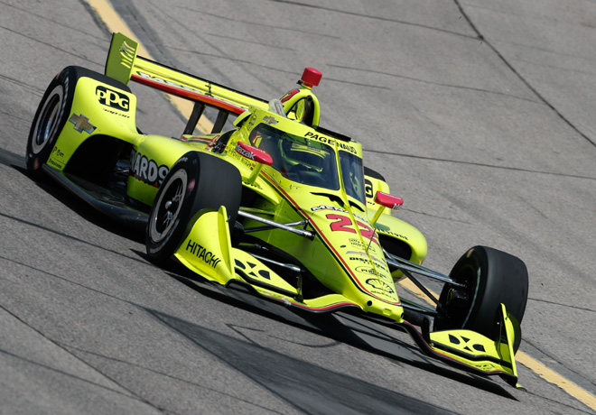 Simon Pagenaud largó desde el último lugar de la grilla de 23 coches, y finalmente fue el ganador de la Carrera 1 disputada ayer por la noche en el Iowa Speedway. Pagenaud contuvo a Scott Dixon por 0.4954 milésimas para su primera victoria de la temporada en la IndyCar Series. Un problema de presión de combustible le habÃa impedido tomar parte de la clasificación.