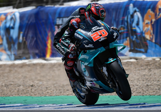 Fabio Quartararo (Petronas Yamaha SRT) completó este domingo otro gran fin de semana en el Circuito de Jerez – Ángel Nieto para ser más líder al llevarse la segunda victoria del año liderando un extraordinario papel de Yamaha, ya que ‘El Diablo’ estuvo escoltado en el podio por la dupla del equipo de fábrica de Yamaha: Maverick Viñales y Valentino Rossi, que regresa al podio después de más de un año. Ante la ausencia de Marc Márquez (Repsol Honda Team), Quartararo consolida su liderazgo con 50 puntos seguido por Viñales con 40.