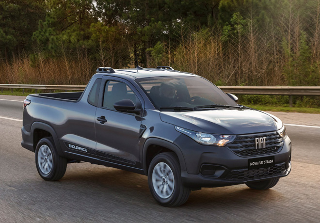 La nueva Strada llega al mercado argentino en tres versiones: Endurance, Freedom y Volcano. Las dos primeras, con una motorización 1.4, mientras que la versión Volcano cuenta con un motor 1.3 Firefly. Todas las versiones son nafteras y cuentan con una transmisión manual de 5 marchas. Además, se ofrecen con Cabina Doble con plazas para cinco ocupantes y la versión Endurance también dispone de la alternativa Cabina Plus.