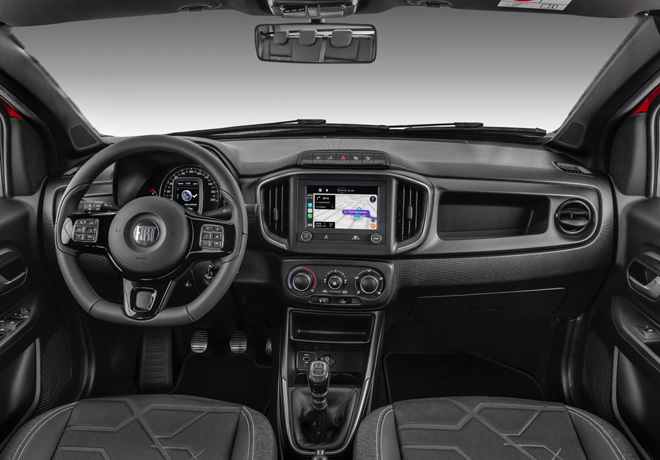 Además, el nuevo posicionamiento de la suspensión trasera mejora la capacidad de carga de la caja. Los 1.059 mm de ancho entre los pasaruedas de la caja de carga hace que sea muy fácil acomodar grandes volúmenes: 844 litros en la cabina doble y hasta 1.354 litros en la cabina plus. La capacidad de carga también va más allá y oscila entre 650 kgs en la versión de cinco ocupantes y 720 kgs en la configuración de entrada. Todos estos números demuestran la gran versatilidad de la Nueva Strada para cualquier tipo de uso.