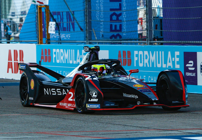 El piloto de Nissan e.Dams Oliver Rowland fue el ganador de la quinta fecha de la Fórmula E disputada en el Aeródromo de Berlin-Tempelhof. El británico habÃa sido el vencedor de la Súper Pole, y desde la mejor posición de salida pudo mantener el liderazgo hasta la bandera de cuadros, logrando la primera victoria del año. Segundo finalizó Robin Frijns (Virgin Racing) y tercero René Rast (Audi Sport), quien superó a André Lotterer (Porsche) en el último giro. Alex Lynn (Mahindra), Neel Jani (Porsche), Mitch Evans (Jaguar), Edoardo Mortara (Venturi), Stoffel Vandoorne (Mercedes-Benz) y Sébastien Buemi (Nissan e.Dams), completaron el top 10.