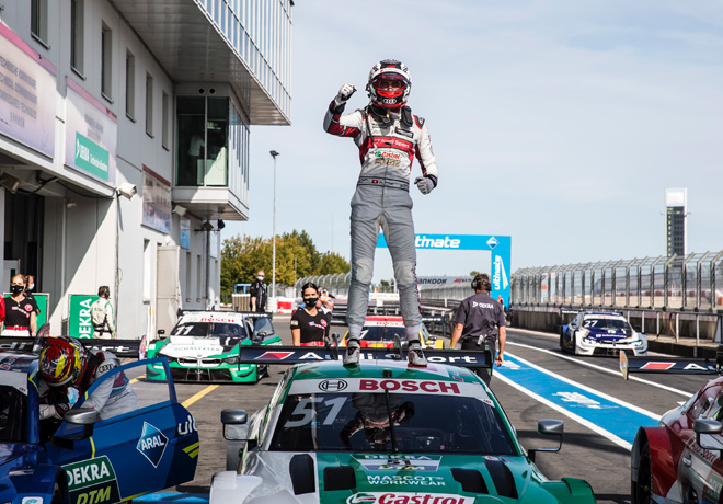 Su rival por el título y compañero de equipo Robin Frijns (Audi) fue segundo. Sin embargo, fue un buen domingo para el equipo Abt que celebró un impresionante doble éxito. El campeón defensor René Rast (Audi) completó el podio. En la clasificación de constructores, el título ya está sellado después del segundo tercio de la temporada, ya que con 872 puntos la marca de Ingolstadt está fuera de su alcance en el liderazgo de la clasificación. Con 356 puntos, el oponente BMW ya no está en condiciones de alcanzarlos.