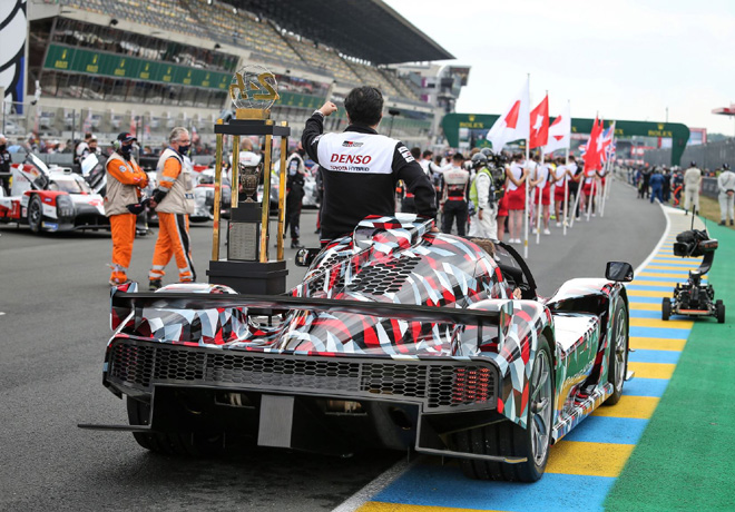 En el lugar apropiado para este vehículo desarrollado en base al auto de carreras TS050 Hybrid tres veces ganador de Le Mans, un modelo pre serie del GR Super Sport personalizado (adaptado como convertible y con su carrocería camuflada con los colores de Gazoo Racing), completó una vuelta de demostración, antes de participar en la ceremonia que devolvió el Trofeo de Le Mans para la carrera de este año, y que finalmente volvió a quedar en manos de Toyota, luego de la victoria del auto #8. El GR Super Sport fue conducido por Alex Wurz, ex piloto de Toyota Gazoo Racing en el WEC.