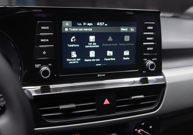 En el corazón del tablero, y proporcionando una facilidad de operación total, está el sistema de información y entretenimiento del automóvil. El Seltos está equipadocon un sistema de pantalla táctil de 8.0 pulgadas, que también ofrece compatibilidad Apple y Android, y conexión Bluetooth para múltiples dispositivos.