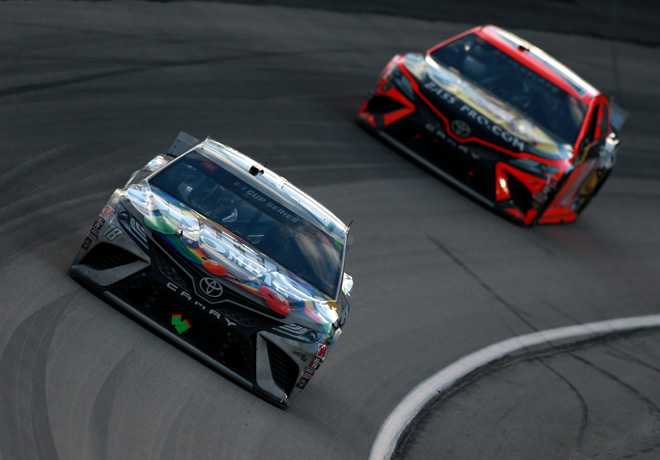 El domingo, Kevin Harvick se había mostrado como dominador, pero un roce lateral contra la pared lo mandó a boxes y regresó en el 38° lugar; también Denny Hamlin estuvo cerca de golpear contra un muro y únicamente perdió algunas pocas posiciones.