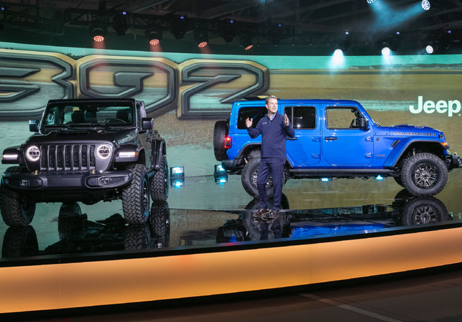 La incorporación de un motor de 6.4 litros (392 pulgadas cúbicas) marca el regreso de un V-8 a la línea Wrangler como opción de fábrica tras 40 años de ausencia. Ajustado específicamente al Jeep Wrangler Rubicon 392 y a su funcional capó con toma de aire, entrega 470 caballos de fuerza y 470 lb-pie de torque.