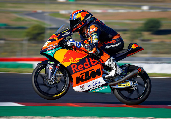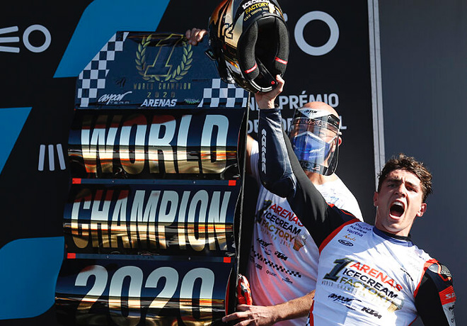 En Moto3, el nuevo campeón es Albert Arenas. El español del Aspar Team finalizó 12º y se consagró como titular de la división menor del motociclismo mundial al cabo de seis victorias en 2020 y por 4 puntos ante el ganador del GP de Portugal.