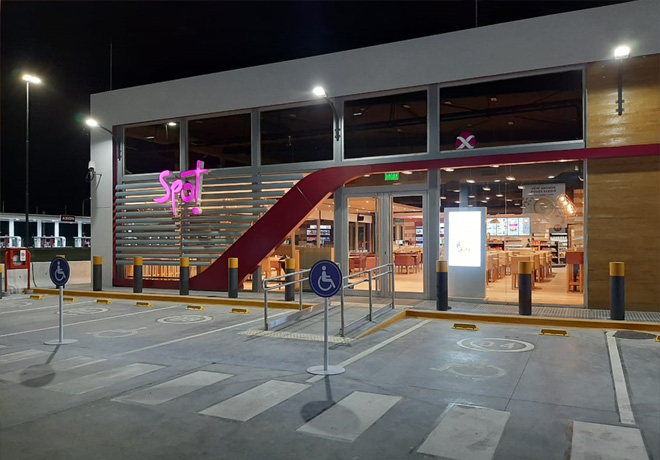 Fiel a su estilo innovador y de vanguardia, sus tiendas de conveniencia Spot! tienen un diseño 2.0 que convierte a los shops en locales innovadores y modernos. Las playas de ambas estaciones cuentan con surtidores de alta tecnologÃa con pantallas LED que funcionarán en un futuro como puestos de cobro para playeros, y puntos de carga para autos eléctricos con la tecnologÃa más veloz disponible en el paÃs para recargar en 20 minutos hasta el 80% de la baterÃa del vehÃculo.