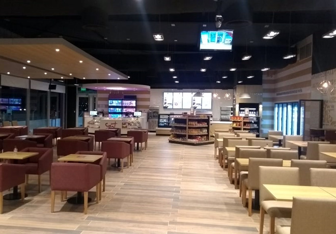 La nueva imagen de Spot! fue parte de un proyecto general de adecuar la imagen de las estaciones de servicio al look & feel 2.0. Es una versión mucho más completa, innovadora y tecnológica. Con todo el mobiliario, equipamiento y revestimiento moderno. La comunicación digital en menú-boards, monitores de comunicación de promociones en el shop y el autoservicio se suman a esta propuesta 2.0.