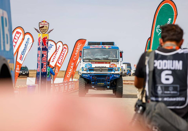 Se trata del 18º título de Kamaz en el Dakar, el quinto consecutivo, igualando así el récord establecido por los camiones azules de 2002 a 2006 y por Mercedes de 1982 a 1986. El checo Martin Macík, ganador de tres etapas en un palmarés pintado casi completamente de azul, seguirá intentando romper la racha.