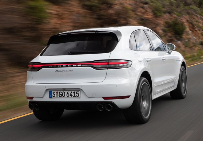 Monta el mismo motor V6 biturbo del Macan GTS, pero ofrece una potencia superior que llega a los 440 CV (324 kW) y un par motor de 550 Nm. Con el paquete Sport Chrono sólo necesita 4.3 segundos para ir de 0 a 100 km/h y su velocidad máxima es 270 km/h. En el Turbo, los frenos PSCB vienen de serie. Para una desaceleración mayor, los clientes pueden optar por los frenos cerámicos Porsche Ceramic Composite Brake (PCCB).