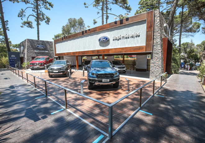 En los espacios de Cariló (ubicado en Av. Cerezo y Divisadero) y Pinamar Norte (Av. Del Libertador y Selene) se exhiben las últimas SUVs lanzadas por la marca, Nueva Kuga HÃbrida y Territory, y las pick-ups Nueva F-150, Ranger y Ranger Raptor para que las personas puedan ver de cerca sus equipamientos, diseños y caracterÃsticas.